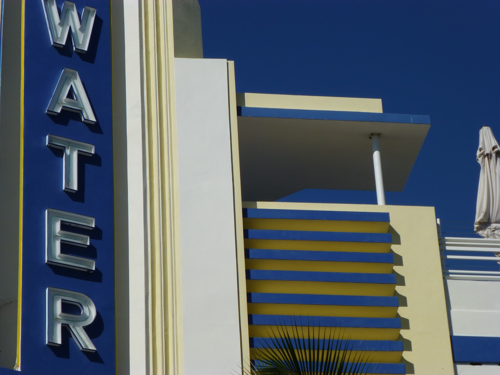 The Miami hotels are more playful and colorful, displaying a wide range of pastel tones, and some great signage. It's become a really vibrant neighborhood, as can be seen in the movies The Birdcage, and, with a lot more violence and blood, Scarface.